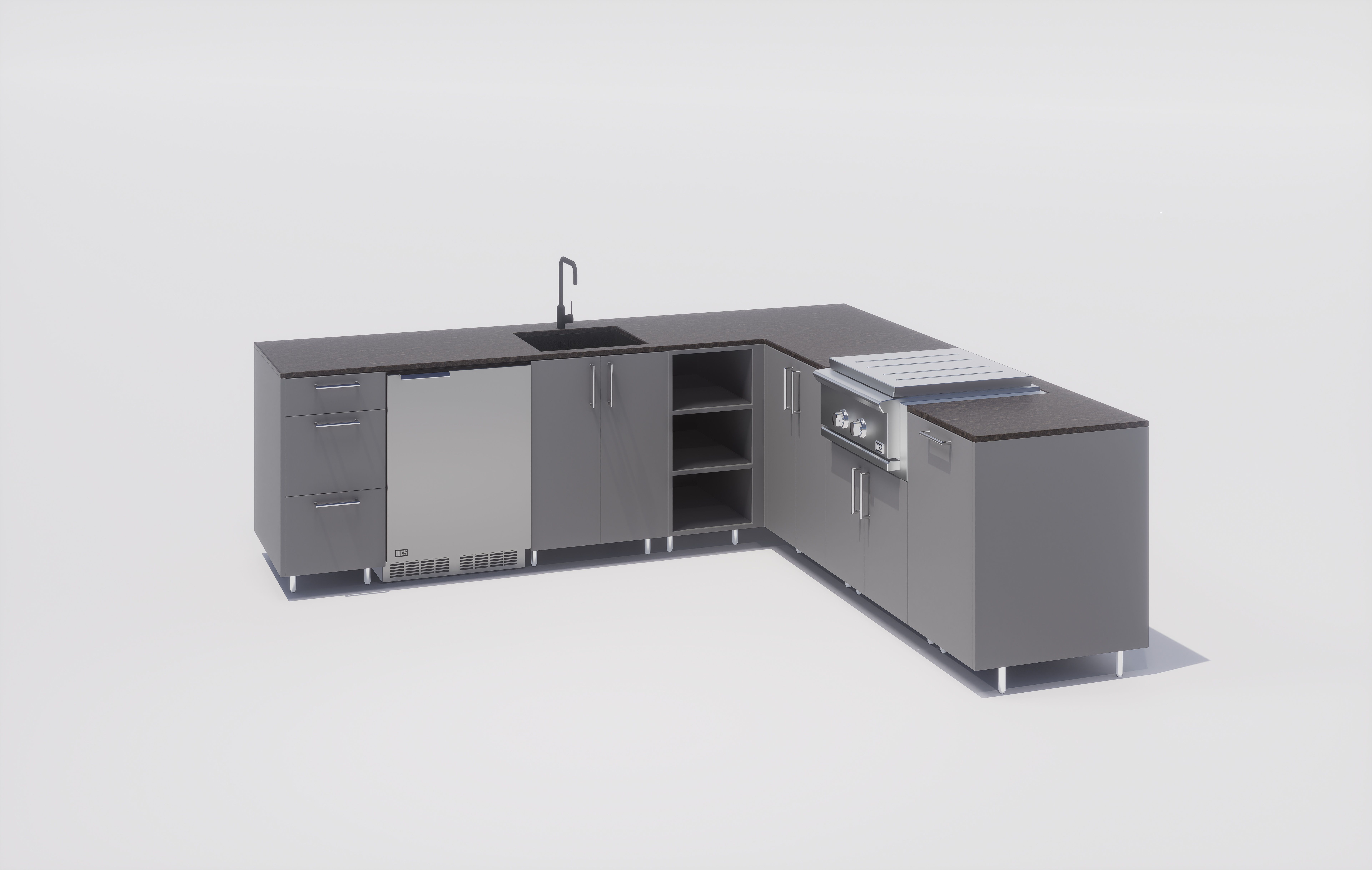 Every detail in your Outerspace kitchen is engineered for durability. From hinges, drawer slides, adjustable legs, and inserts, our outdoor-rated hardware is designed to prevent rust and wear, ensuring your kitchen withstands the elements.